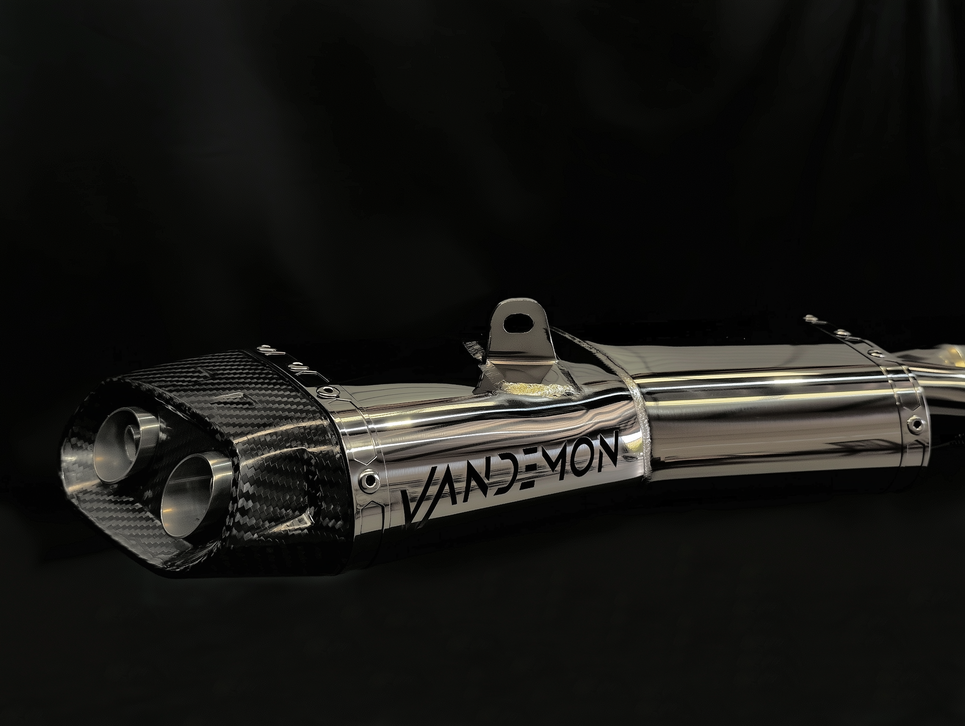 - Material: Silenciador de acero inoxidable 304 pulido con punta de fibra de carbono