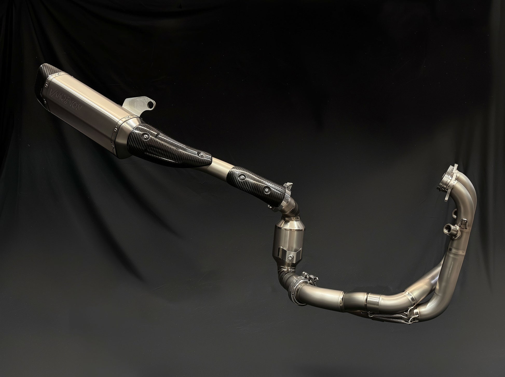 Para mejorar la ya bien equipada CFMOTO 800MT Adventure, que cuenta con el sensible motor bicilíndrico en paralelo de KTM, Vandemon ha desarrollado un sistema de escape de titanio de primera calidad para completar el paquete.