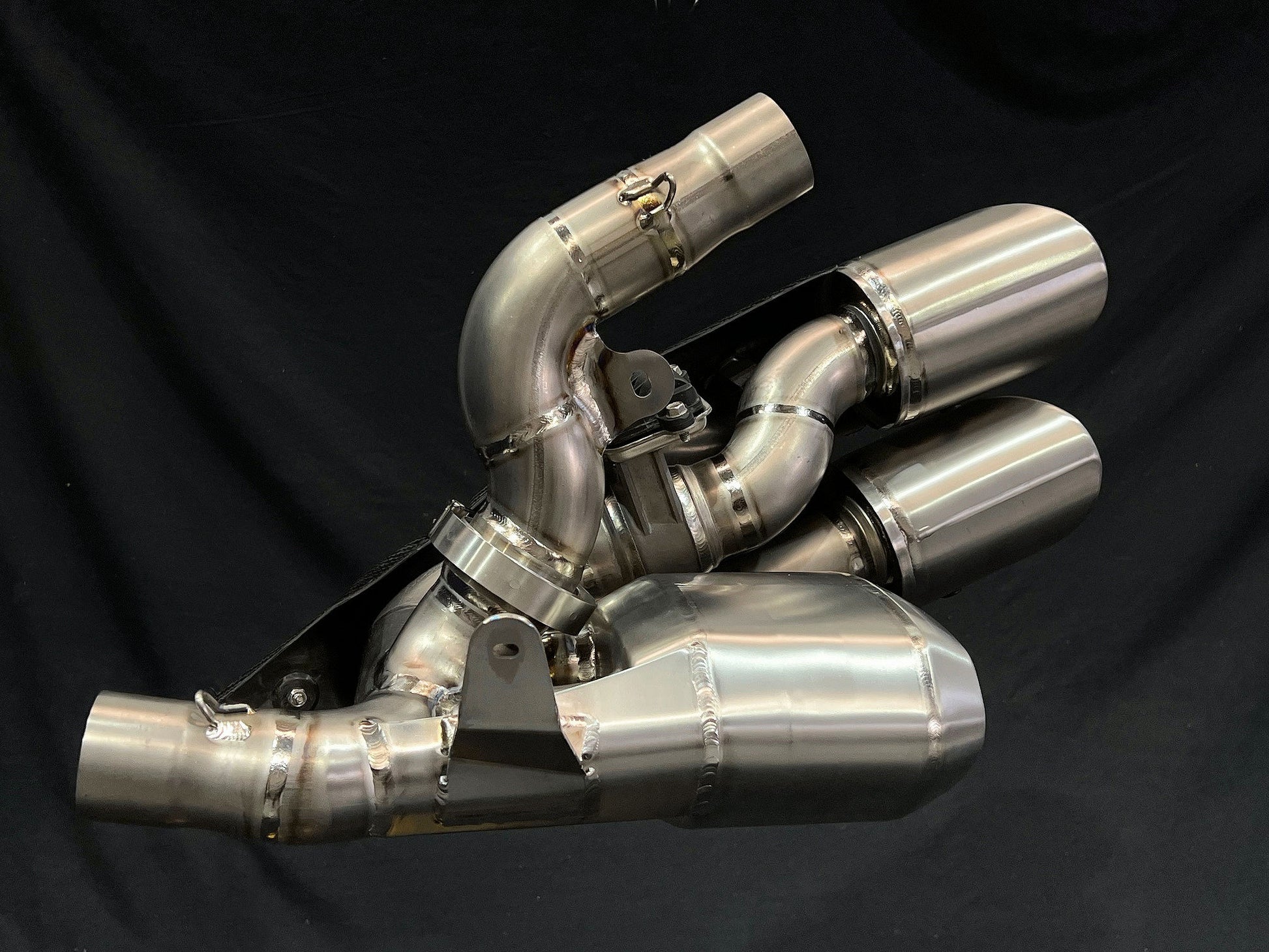 Los sistemas de escape Vandemon logran el máximo rendimiento y estilo con un gran sonido utilizando las últimas técnicas de fabricación y materiales exóticos como el titanio, lo que da como resultado un sistema de escape significativamente más liviano con menos retención de calor que el sistema OEM. Además, la calidad de la soldadura es insuperable con soldaduras ultrasónicamente perfectas, algo que los clientes de Ducati esperarían y apreciarían para una marca de motocicletas tan icónica que solo complementa a esta gran marca.