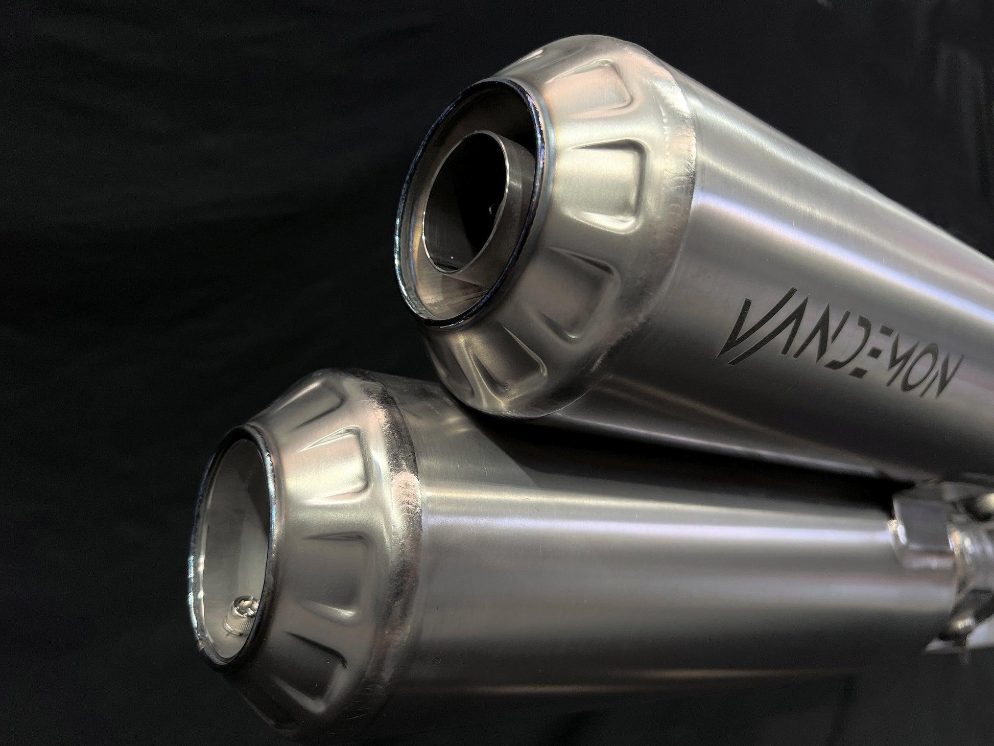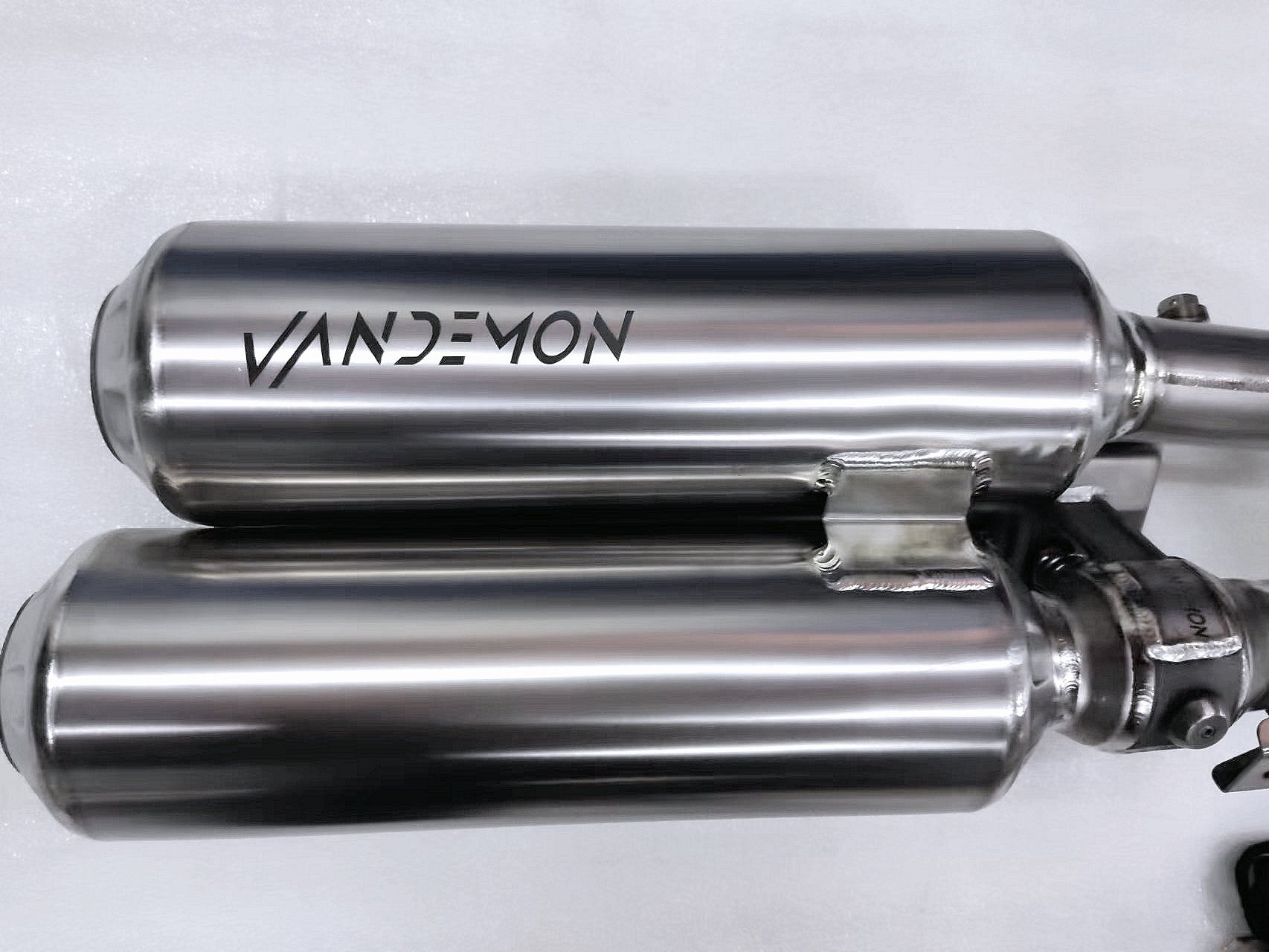 A medida que las regulaciones sobre emisiones de ruido se vuelven más estrictas en todo el mundo y enfrentando mayores críticas del público, Vandemon desarrolló silenciadores y tubos de conexión Slip-On de titanio para reemplazar el pesado escape OEM de acero.