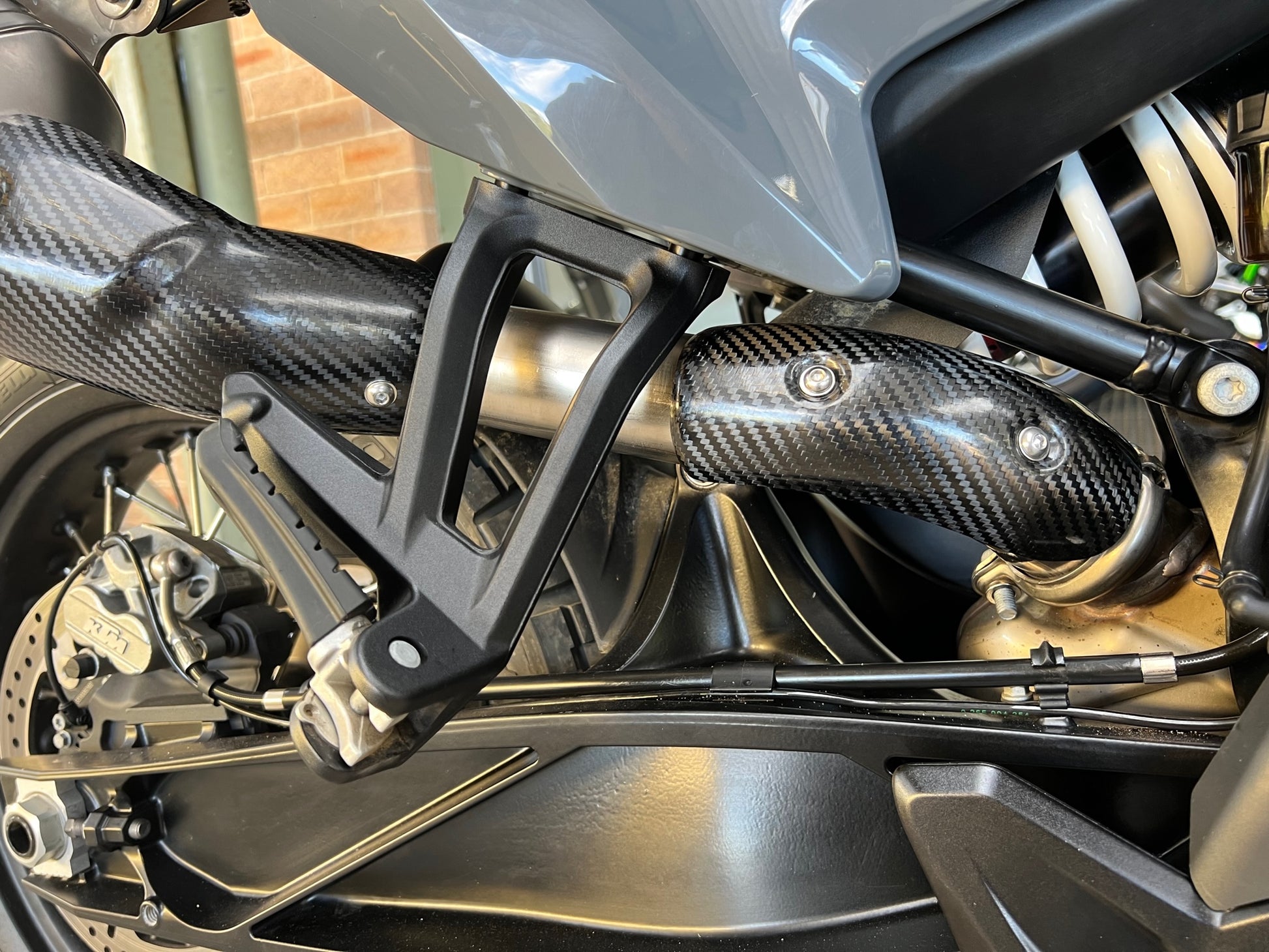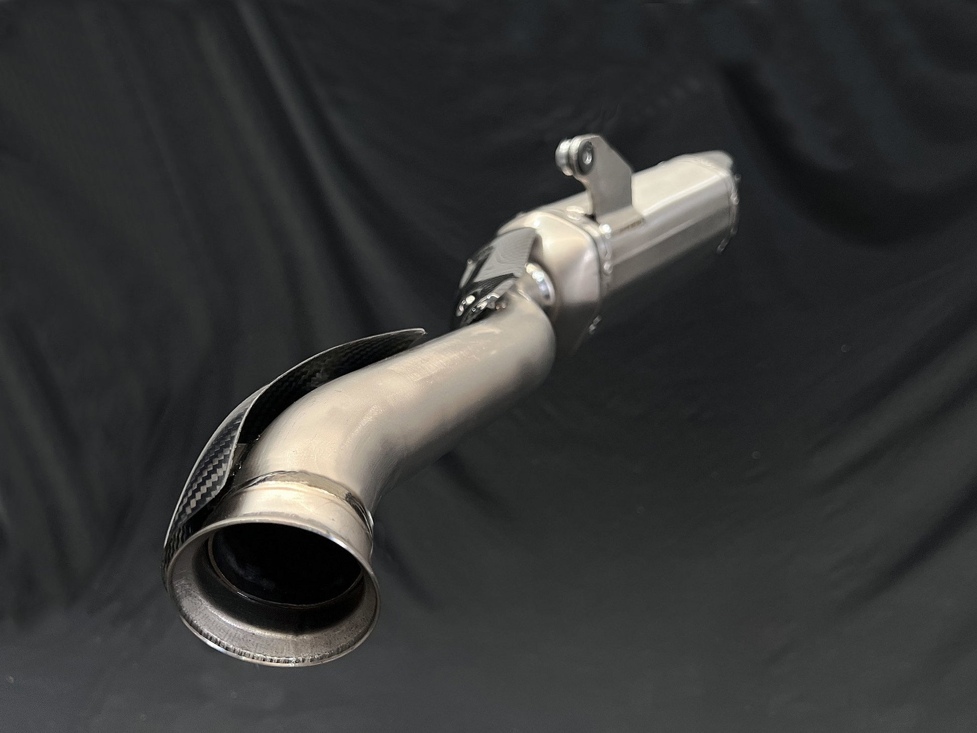 El silenciador está fabricado íntegramente con titanio japonés Ti1 de la más alta calidad, lo que reducirá el peso en 1 kg en comparación con el silenciador OEM. Cuenta con un diseño de flujo libre que permite a los afinadores maximizar el rendimiento del extraordinario motor de dos cilindros, al mismo tiempo que produce un sonido profundo y gutural.