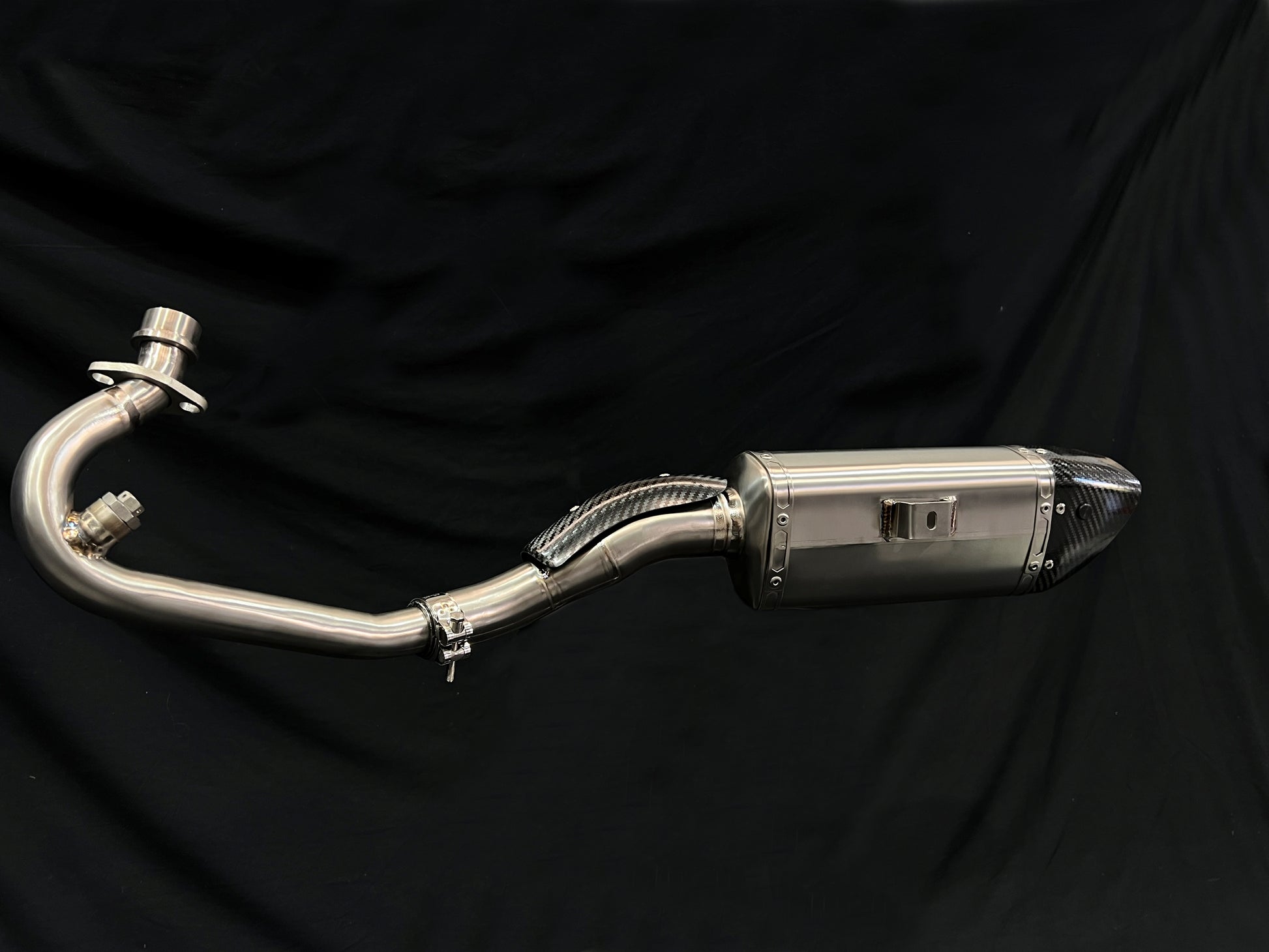 We at Vandemon have specially designed a full Titanium Exhaust, including the link pipe, for the new Italjet Dragster 125/200. Unlike our competitors who use a combination of titanium and stainless steel, our exhaust is made entirely of 100% Ti1 Titanium, which is also used in all our other high-performance exhaust systems. This adds exclusivity and style and eliminates the OEM restrictions that limit power and sound. This is particularly ideal for traffic conditions where scooters spend a lot of time."