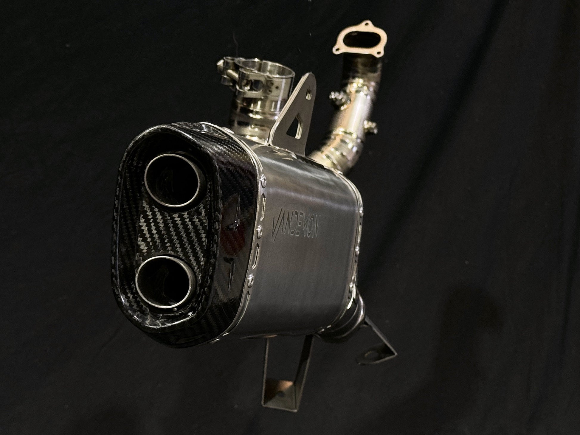 重要的! Vandemon 排气系统旨在提高性能并适度改善声音。Vandemon 不会试图满足噪音排放标准,因为最终结果与您的 OEM 排气系统已经实现的结果没有区别。请咨询您所在国家/地区的管理机构,了解噪音排放标准规则和法规。