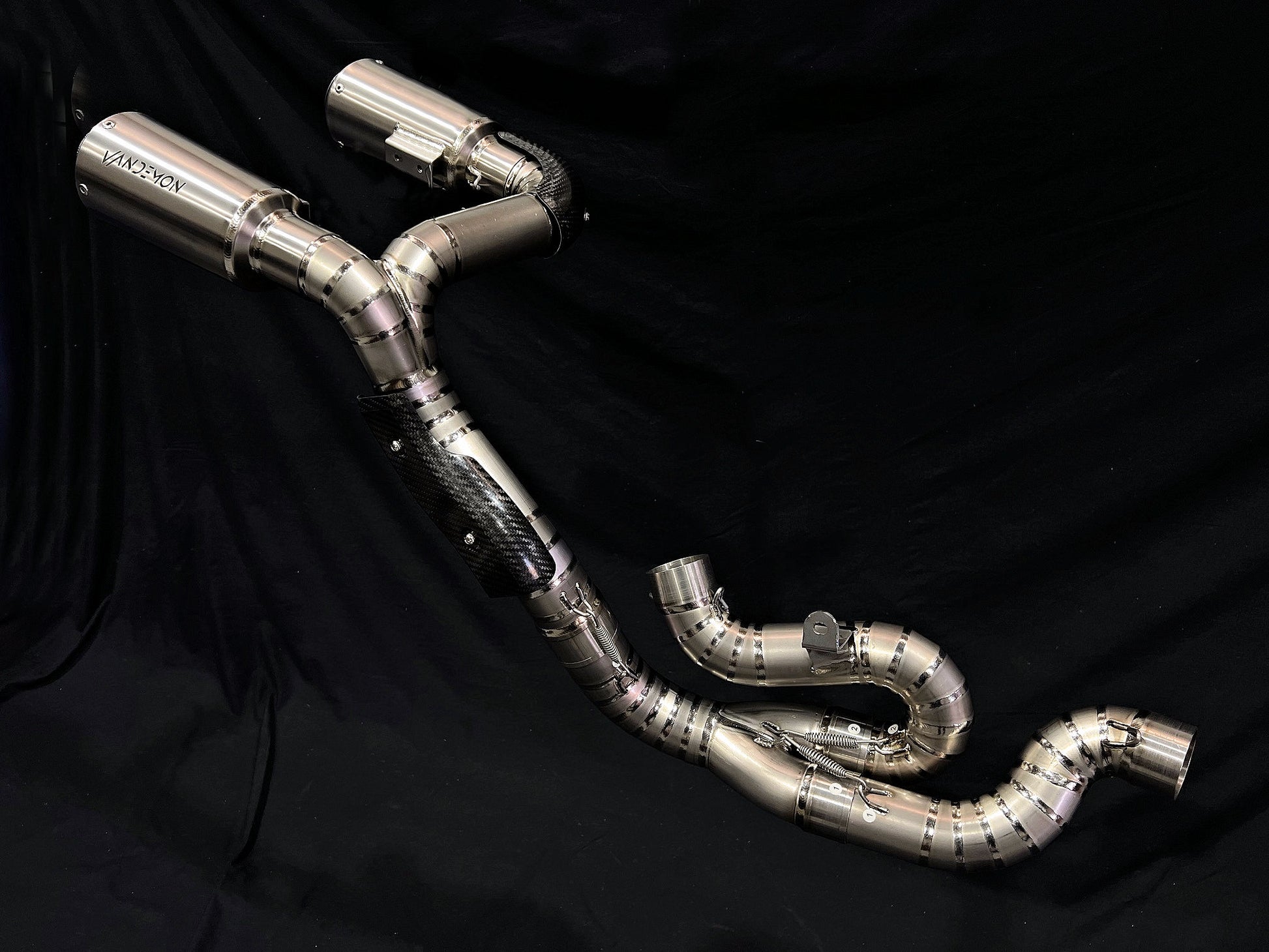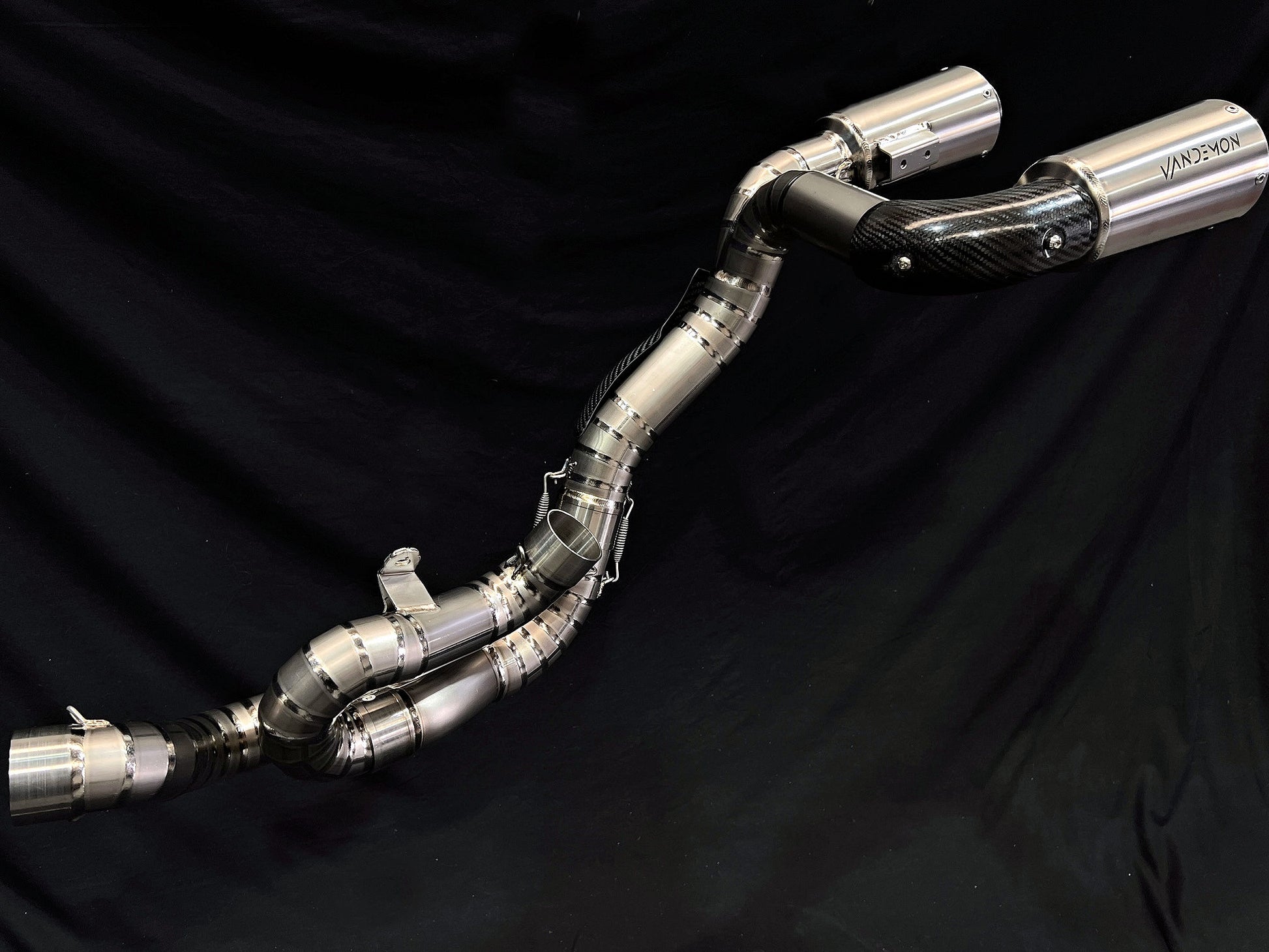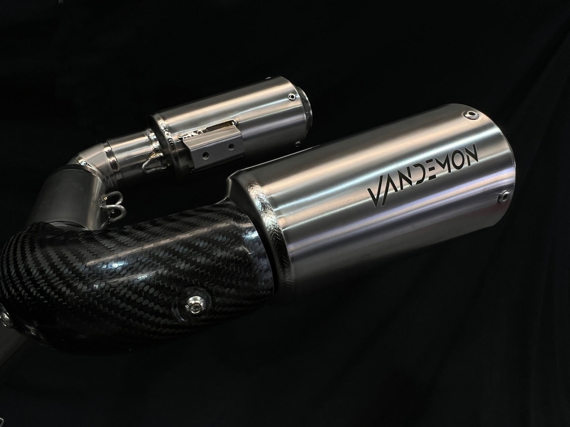 Vandemon 全钛高位安装轮手推车滑套式双消声器排气管完全由 100% 钛制成。