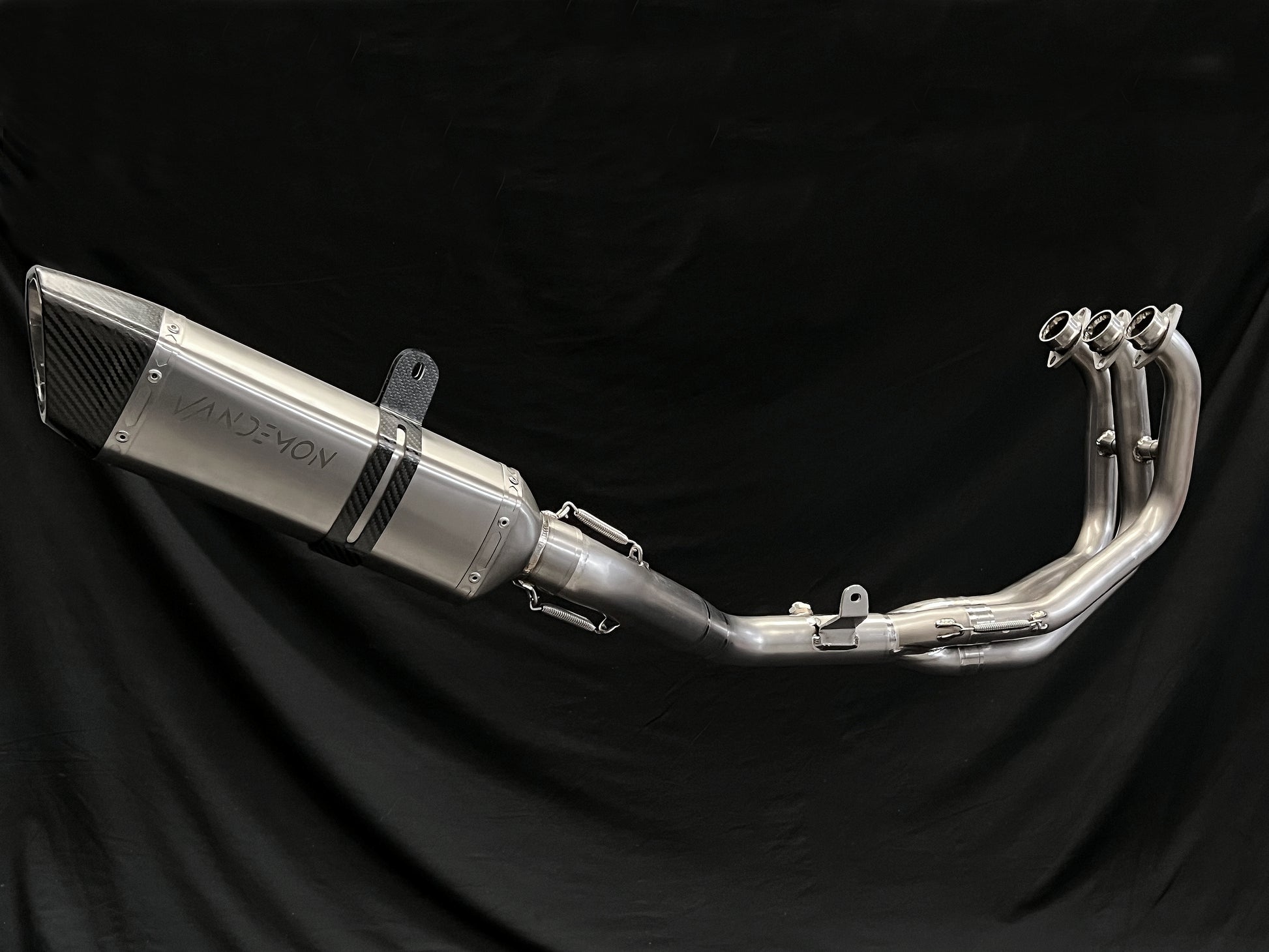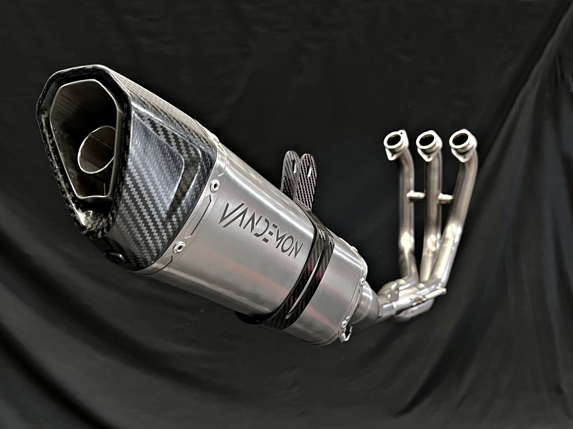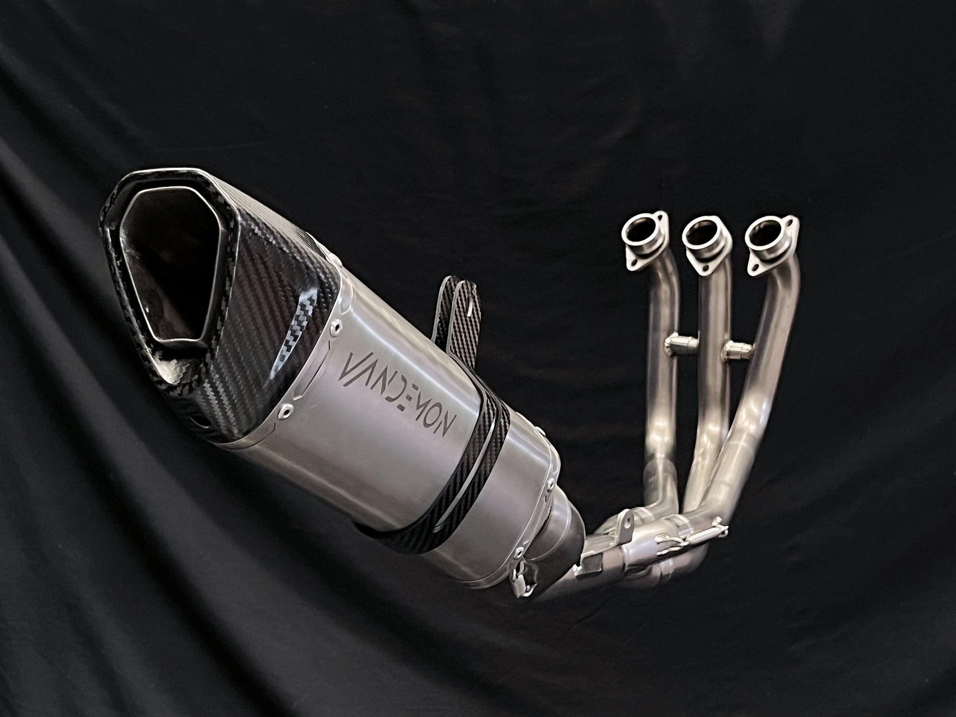 警告!当品牌声称它们由钛制成时,请注意只有消声器是钛制成的,而集管和连接管是由不锈钢制成的。在 Vandemon,当我们说我们的产品是由钛制成的时,它确实是这样的!